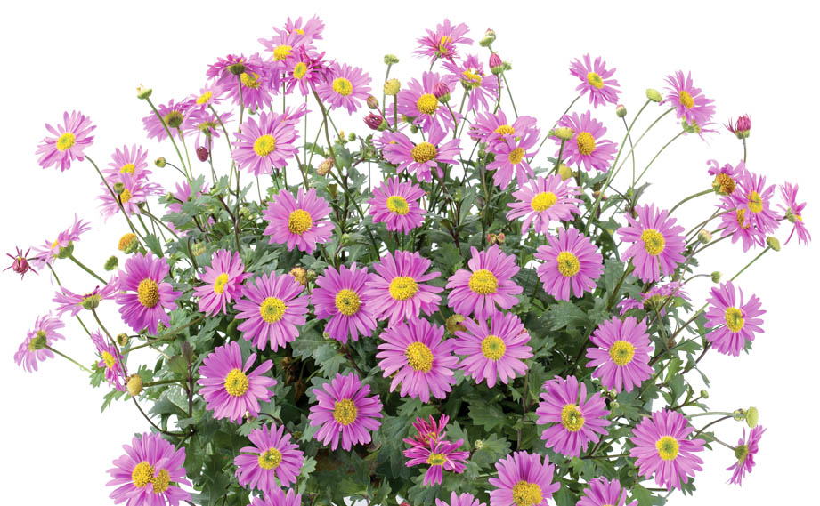 既存品種に比べ差別化が出来る大きな花が特徴。分枝性が良く、コンパクトで草姿も良くまとまる。強健で耐寒・耐暑性もあり、四季咲き性が強く、関東以西の暖地では冬でも開花する。生育旺盛でボリュームある草姿となり、3.5号程度の花付きポット仕立てから、4号程度の鉢物仕立て向き。この場合、プラグ苗から2回ピンチで約10週が出荷の目安。