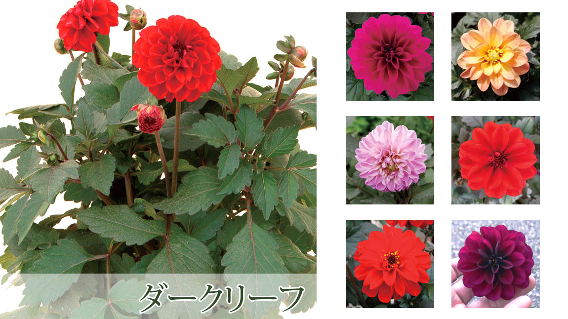 開花草丈30~40cmとコンパクトにまとまり、鉢物にも庭植にも向く中輪ダリア。分枝が良く生育旺盛で、4号鉢サイズでボリュームある草姿となる。花芽分化には12時間以上の日長が必要。