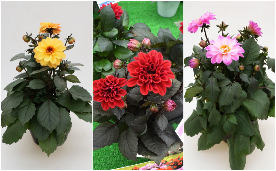 大輪多花性でコンパクトに生育する中型タイプの銅葉ダリア。葉色は艶があるダークリーフで、花色とのコントラストが鮮やか。耐雨性があり、暑さにも強くて春出荷のみならず秋出荷にもお勧め。3.5~5号鉢出荷向き。