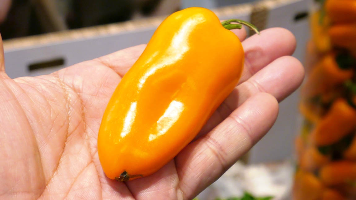 一般的なパプリカに比べて果実は5~7cm程度と小型。種子は少なく果肉は厚くてジューシー。爽やかな甘みがあり、サラダ等の生食でおいしい。開花後約50日で収穫ができる早生品種で、その後夏から初秋にかけて次々にたくさん収穫できる豊産種。短期間で色づくので家庭菜園でも容易に栽培できる。レッド、オレンジ、イエローの3色。