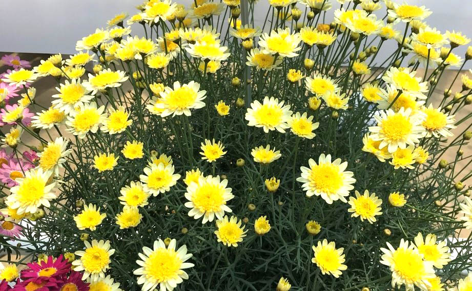 ホワイト~クリーム色のアネモネ咲き品種。開花は早生。4~5号向け。