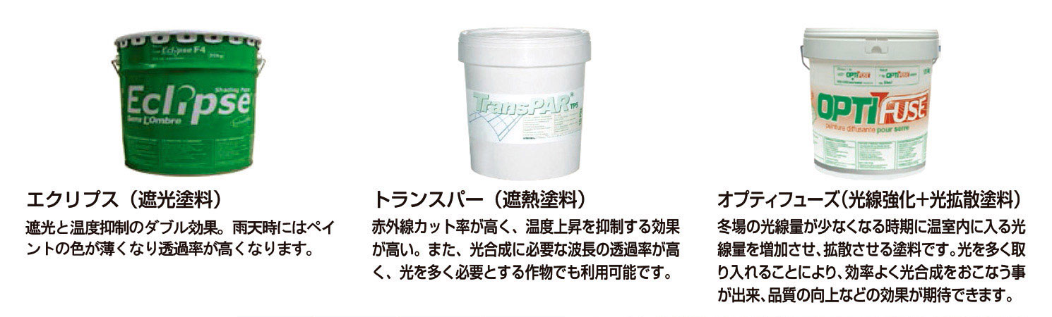 温室及びハウス用のペイントです。フランスで開発されたこの商品は環境にも十分配慮されており、天然由来の成分を主体としていますので毒性が極めて低くなっています。