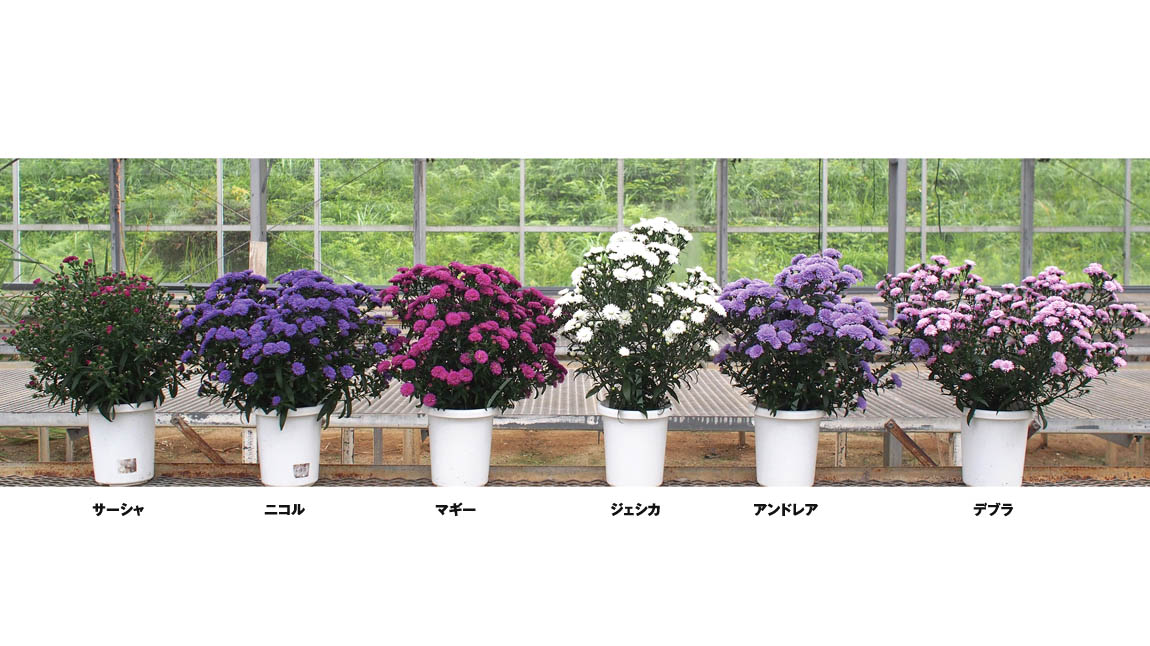 暑さに強くて高温でも花芽をつけ、開花後も花持ちがよくて長期間楽しめる条件を揃え、店持ちが非常に良くなり、以前のイメージを完全に払拭出来るアスター。分枝性能が高いので株はドーム状になり、完全八重咲のボリューム感のある花が株全体を覆う。このため、この特性に合った3.5号~4号ポット仕立てで、従来品種との差別化出荷がおすすめ。強光下で分枝性が向上するので露地栽培を推奨。栽培期間はカット苗から約3.5ヶ月程度。5月下旬のカット苗から自然開花で9月上中旬出荷が目安。シェード栽培で計画生産可能。